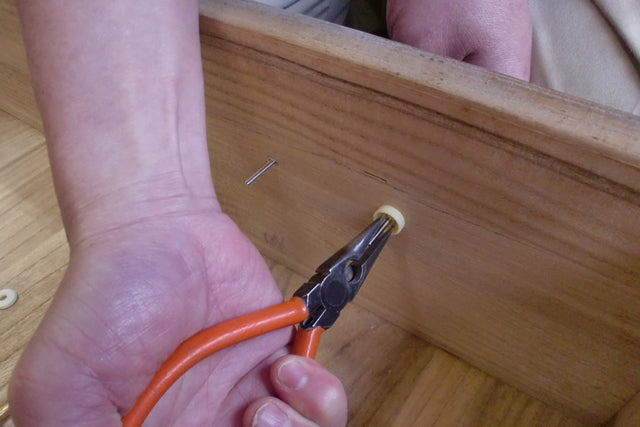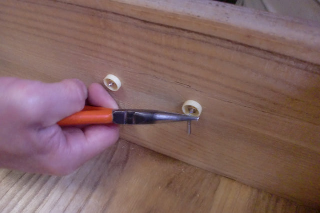 Make a fold in the split fasteners with pliers. The folded split fasteners can be cut if they are too long due to the thickness of the wood.