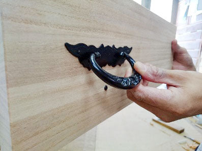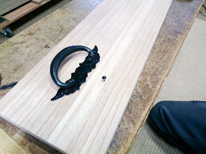 Step 3. Apply glue to the recess and slowly hammer the door pull into the recess with a wooden hammer.