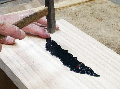 Step 1. Recess a shape of the hardware a bit smaller than the hardware itself and hammer it into the recess.