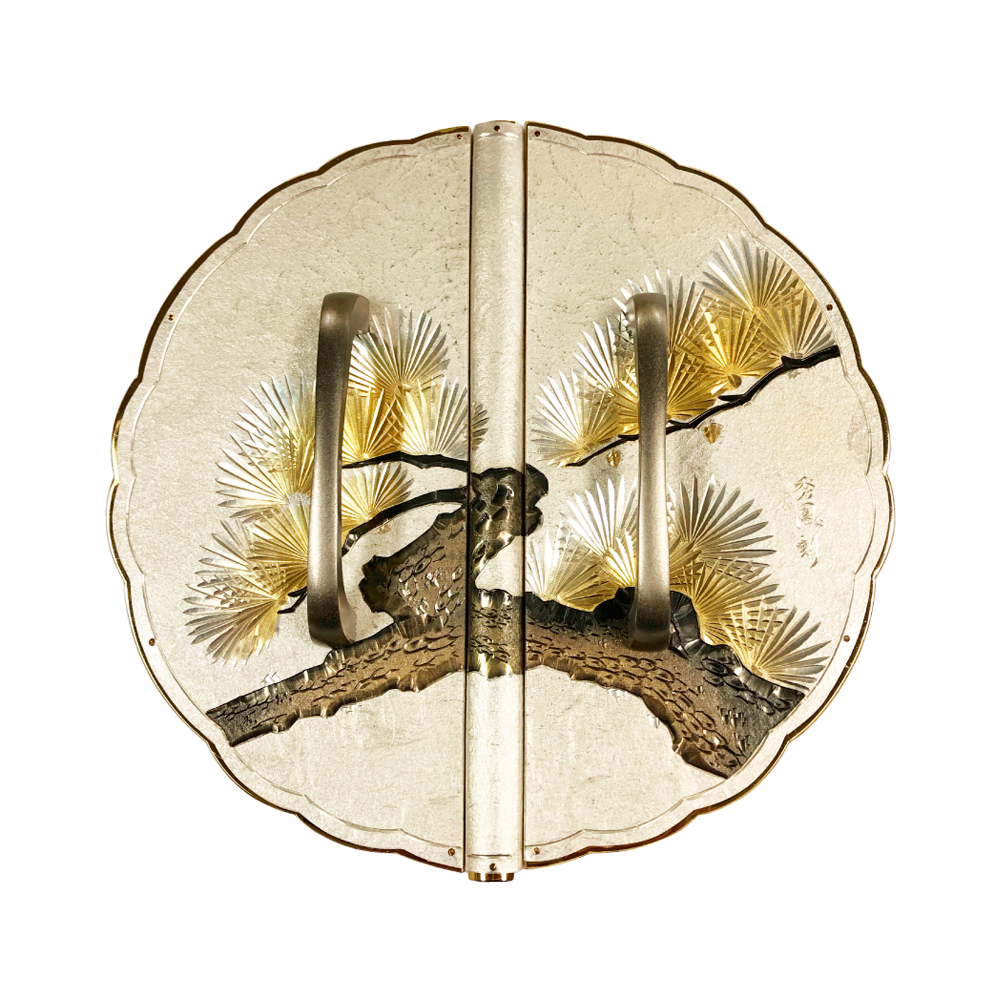 Japanese Pine Decorative Plate with Grip Handles